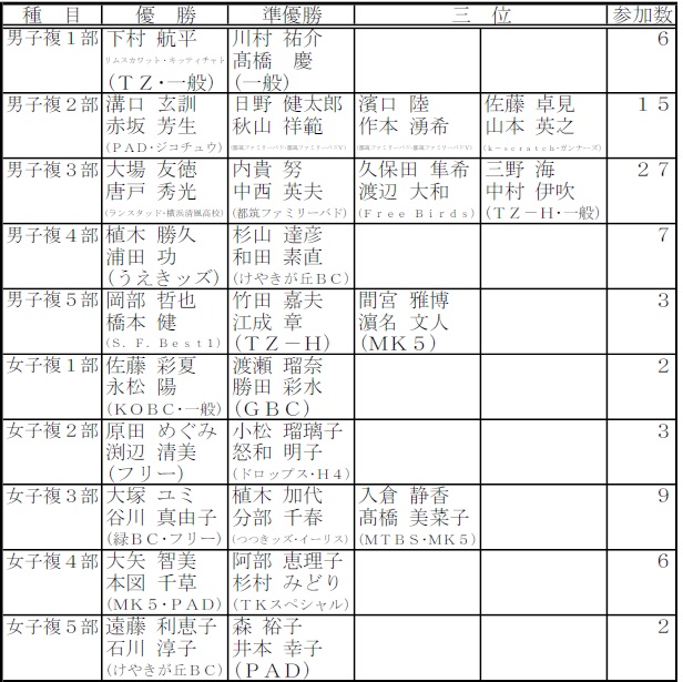| 第31回都筑区民バドミントン選手権大会 (ダブルス戦) |
